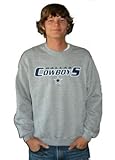 Wear this cozy Dallas Cowboys midweight athletic grey sweatshirt and show your Cowboys pride.  Full chest screen print Dallas Cowboys and team logo.  A great deal on a special purchase.  50/50 cotton/poly blend